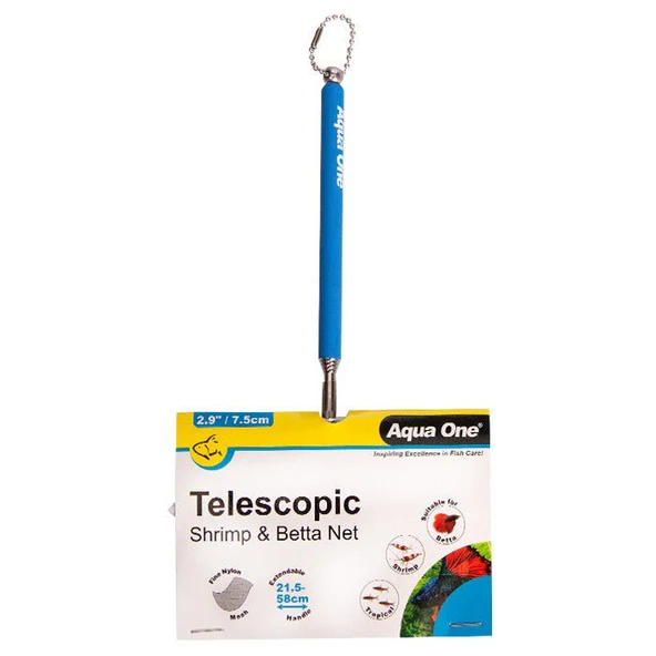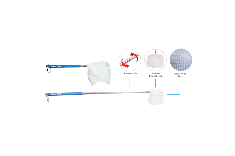 Aqua One Extendable Fine Fish Net Shrimp & Betta Telescopic 7.5x7cm white mesh
