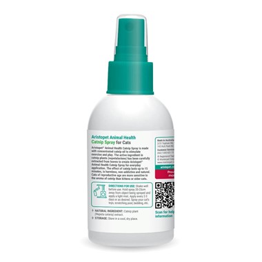 Our easy to use catnip spray is made with concentrated catnip oil to stimulate exercise and play. The active ingredient in Catnip plants (nepetalactone) has been carefully extracted from leaves to create Aristopet Catnip Spray for everyday application.