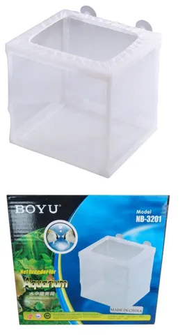 • BOYU Fish Net Breeder Small Safely separates new born fry from mother and other fish or isolates injured or aggressive fish, frame style with removable locking legs, suction cups to the side of your tank.