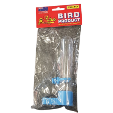 Clear tube water or feeder for use with birds, Plastic hanging bracket for hanging onto cage wire.