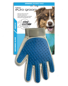 The Euro Groom Pet Grooming Glove is a gentle grooming glove that assists in removing dead and loose hair and promotes a glossy coat.