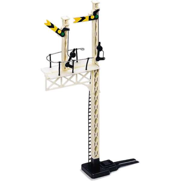 The Junction Distant Signal represents the type of signal used on the approach to points. The taller signal controls the main line whereas the yellow arms signify ‘distant’ or ‘caution’, and are seen prior to signals with red arms. This signal measures at a height of 172mm and is just the accessory to complete any railway scenery or layout. Signals for manual operation only.
