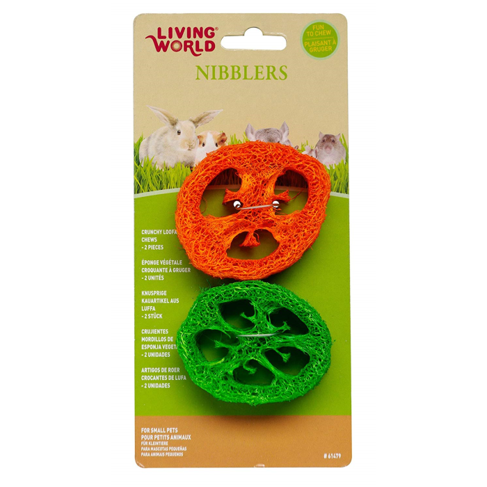 “Living World® Nibblers Slices Loofah Chews contain 2 slices of colourful loofah chews.Living World® Nibblers are specially designed chew toys that help improve your small pet’s dental health. They are also fun to chew on and are an excellent boredom buster.All Nibblers are colour-finished using non-toxic food colorants. “