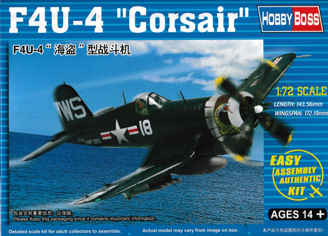 One of the classic aircraft of the World War II period, the Corsair was designed in 1938 to meet a USN requirement for a shipboard fighter. The distinctive inverted gull wing was to provide sufficient ground clearance for the huge propellor attached to the Double Wasp engine. The XF4U-1 was first flown on May 29 1940. On October 1st, 1940, the aircraft became the first to exceed 400mph – achieving 404mph (646kmh). The aircraft entered service in mid 1942, and development continued through to 1952.