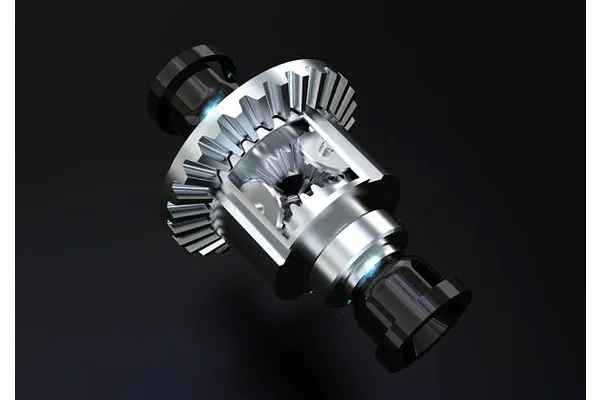 The vehicle features a high-strength nylon planetary differential that provides durability and wear resistance, enhancing stability during cornering. For even greater performance, the differential can be upgraded to a metal version (sold separately).