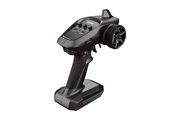 - Transmitter with steering range percentage adjustment, steering trim, out-of-control protection, and speed switch