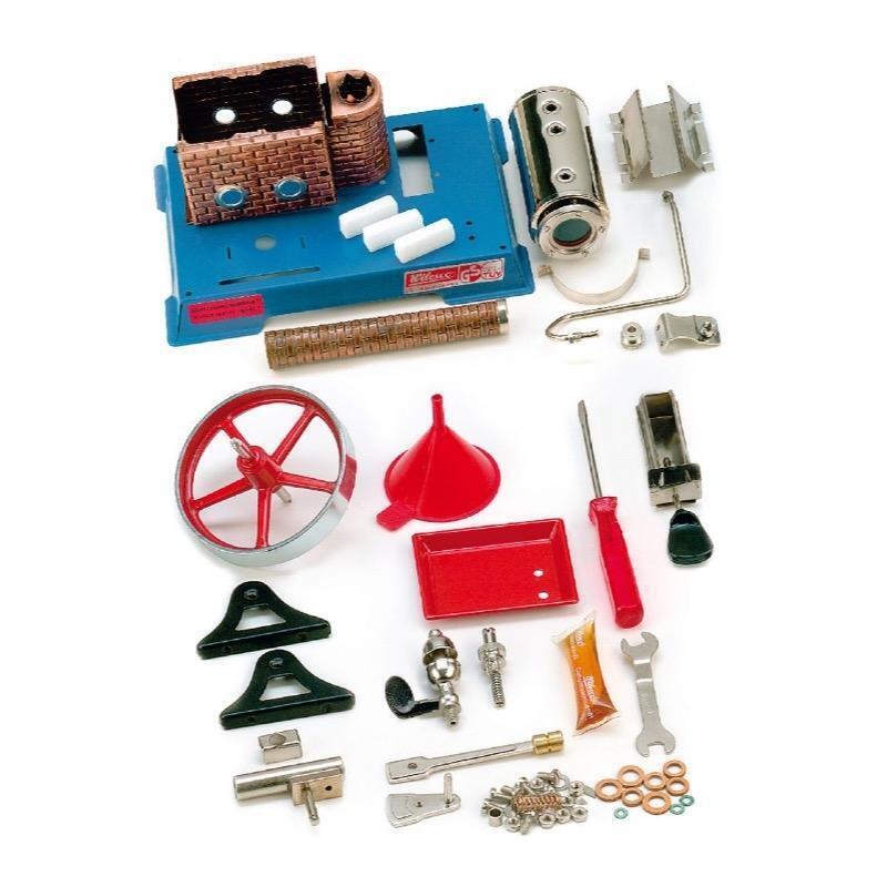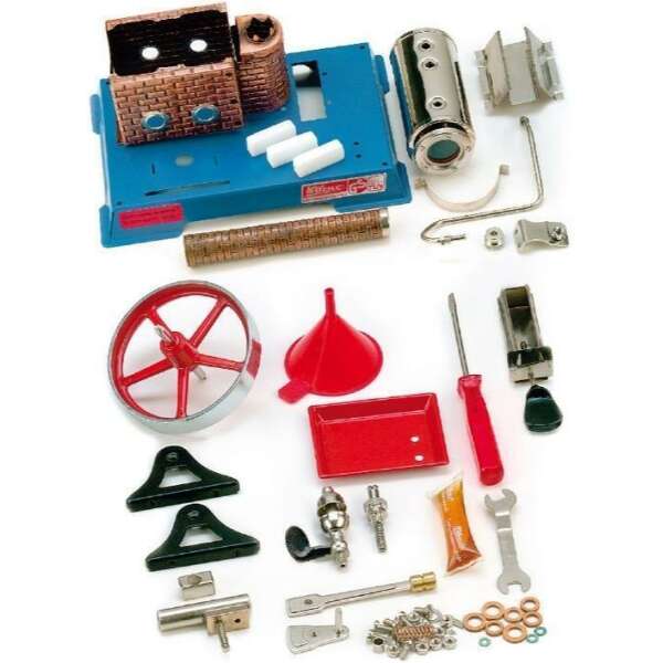 With this Wilesco D 5 kit, steam fans are shown how nostalgic energy is created. For this purpose every kit contains an easy to understand and illustrated instruction pamphlet. Even the least experienced model builder can assemble this kit in a very short time. The assembly contains no soldering work as all components are screwed together. This kit has the same specifications as the factory produced D 6 Steam Engine. It is an entry level engine. It has enough power to run itself. It cannot run any accessories.